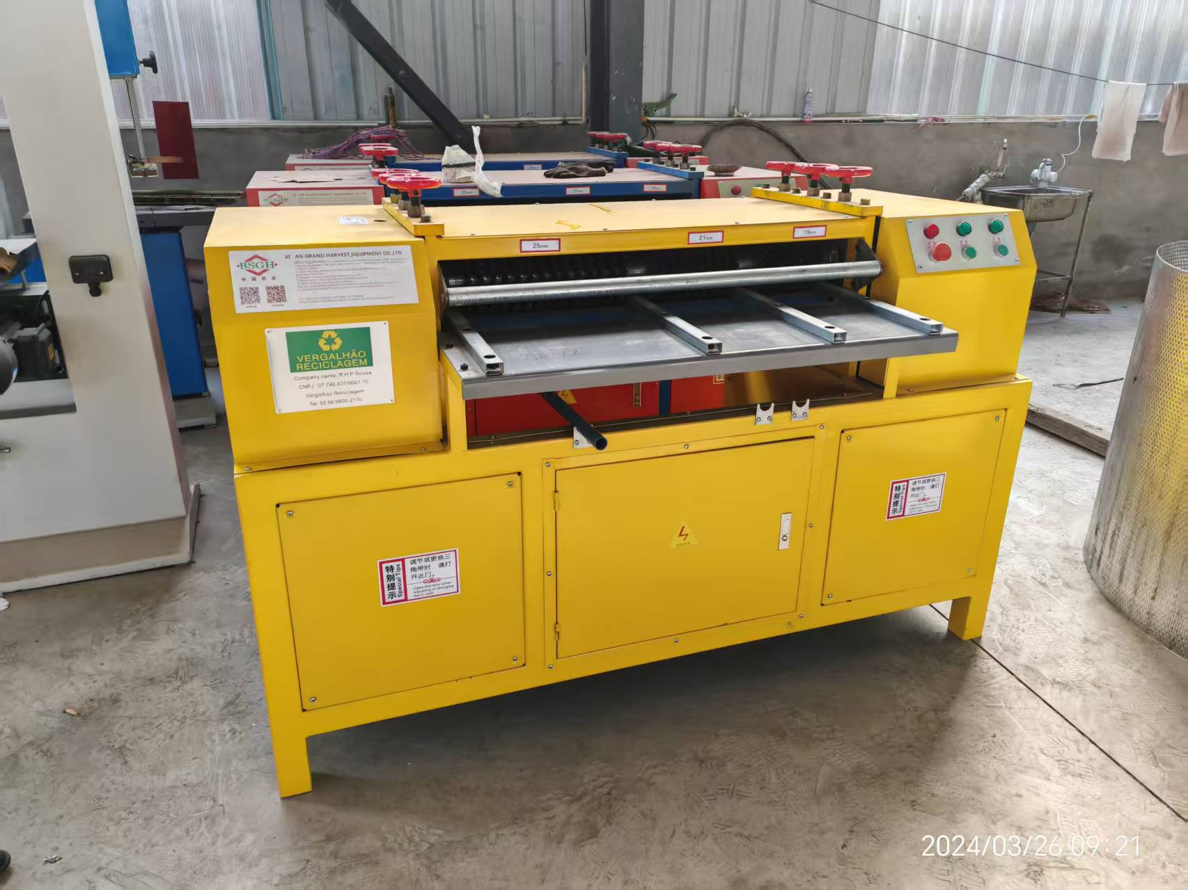本機(jī)可將單層和雙層舊空調(diào)散熱器外面鋁箔和里面的銅管分離開,回收者可將銅鋁分開出售以增加收入,1天可處理散熱器2-4噸。本機(jī)易操作,效率高省人工,有廣闊的市場前景,是一項快速可行的致富項目。